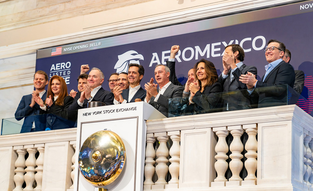 El mejor conocido como “campanazo” se dio después de que el pasado 6 de noviembre, Aeroméxico colocará de manera dual sus acciones tanto en el mercado de valores estadunidense y la Bolsa Mexicana de Valores (BMV).