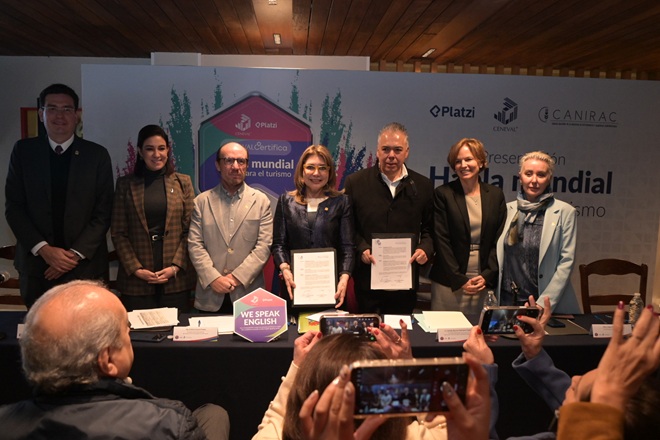 Durante la conferencia de prensa en la que se presentó el programa “Habla mundial” y se formalizó el convenio de colaboración, la capacitación y profesionalización del personal fue señalada como una prioridad estratégica para el sector turístico.