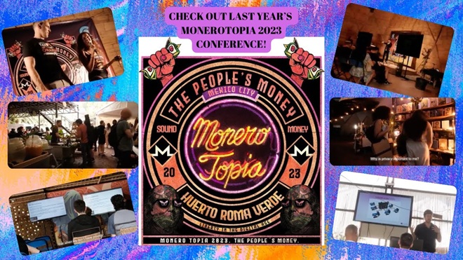 Monerotopia es una conferencia internacional anual que reúne a la comunidad global interesada en criptomonedas, privacidad y sistemas descentralizados. Celebrando su cuarta edición, combina charlas y workshops con un mercado abierto donde se acepta Monero y otras criptomonedas como medio de pago, demostrando su uso práctico como dinero cotidiano. Nacida en 2022 dentro de la comunidad Monero, es organizada por el equipo detrás de su principal canal de YouTube y se realiza en Huerto Roma Verde, ofreciendo por algunos días una experiencia real de cómo podría funcionar una utopía basada en Monero.