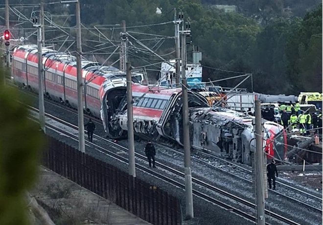 La tragedia ocurrió cuando un tren de la compañía Iryo, de origen italiano, que había salido de Málaga (sur) con destino a Madrid con 317 personas a bordo, descarriló sus tres últimos vagones e invadió la vía contigua por la que en ese momento circulaba otro convoy de Renfe, compañía española, que tenía como destino Huelva (sur), que también descarriló.