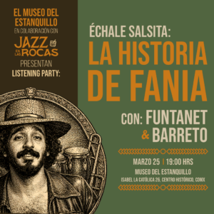 El Museo del Estanquillo y la plataforma Jazz en las Rocas llevarán a cabo la «Listening Party: La Historia de Fania – Échale Salsita» el miércoles 25 de marzo a las 19:00 horas, con acceso al recinto desde las 18:00 horas. Inmersión sonora en formato vinilo que será guiada por Jordi Funtanet, reconocido gestor cultural y director del Festival M Jazz, en conjunto con Barreto, destacado curador musical e investigador sonoro. Ambos expertos, presentarán esta sesión de escucha desde la fundación y el impacto contracultural del mítico sello neoyorquino Fania Records, analizando la obra de gigantes que definieron el género como Celia Cruz, Willie Colón, Héctor Lavoe, Johnny Pacheco y Jerry Masucci. La velada de apreciación, ubicada en Isabel La Católica 26 en el Centro Histórico, tiene una cuota de recuperación de 250 pesos que incluye bebida de cortesía y requiere de registro previo a través de la boletera de www.notabot.mx