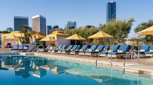 El hotel describe este espacio como una piscina rooftop de 60 pies rodeada de cabanas, pensada para disfrutar el clima californiano durante todo el año desde una perspectiva mucho más privada y sofisticada.