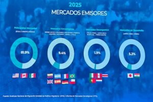 Uno de los datos más relevantes es que 82% de la ocupación hotelera proviene de solo tres mercados: Estados Unidos, México y Canadá, aunque el estado busca diversificar su presencia con mercados emergentes como Brasil, Colombia y Argentina.
